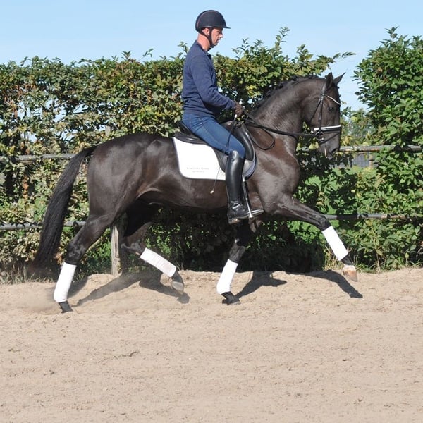 Sparky is a very well-behaved and mega-spectacular gelding! His sire, Secret, is known as a producer of very good character and tremendous movement! His first crop of offspring represented 25% of the participating 5-year-olds at the World Championships for Young Dressage Horses! And numerous licensed stallions! Mother Ethel (Elite, IBOP, PROK, Sport) competed at Small Tour level and is one of the finest horses we have ever had the pleasure to work with. She is also the dam of the licensed stallion Especial (Jochie VZH), who is competing at 5* Grand Prix level under Charlotte Fry, and he is the sire of Everest, the PAVO Cup winner. The licensed stallion Rise as Ledgens VZH is also a son of Ethel. Mother's dam was our foundation mare Wilona. This Elite, Preferent, Prestatie, IBOP, PROK and Sport mare has brought us a lot of good! Everything from this line has an enormous amount of go, commitment, level-headedness and handiness, which makes these exceptionally fine horses to work with!