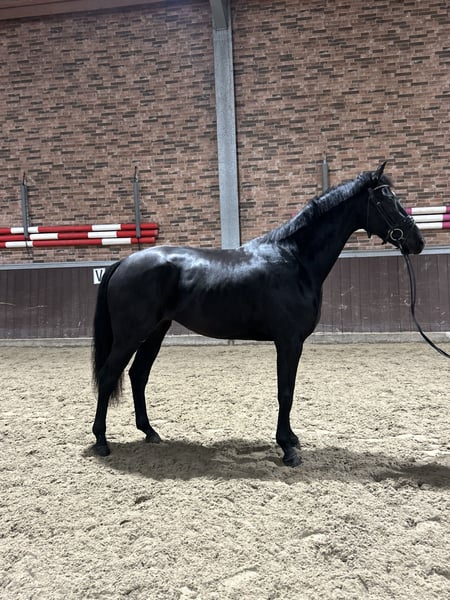 Beautiful Black Gelding – 3 Years Old – 1.70m This stunning young gelding is a real eye-catcher. He is still green but shows a very willing and positive attitude toward his work. He has been ridden a few times and is picking everything up quickly and confidently. Sired by Jameson out of an Apache mare, he comes from an excellent and proven bloodline known for talent, rideability and expressive movement. A lovely horse with great potential for the future — ideal for someone looking to develop a young horse. This stunning young gelding is offered for sale on behalf of the owner. Contact: +31618310623