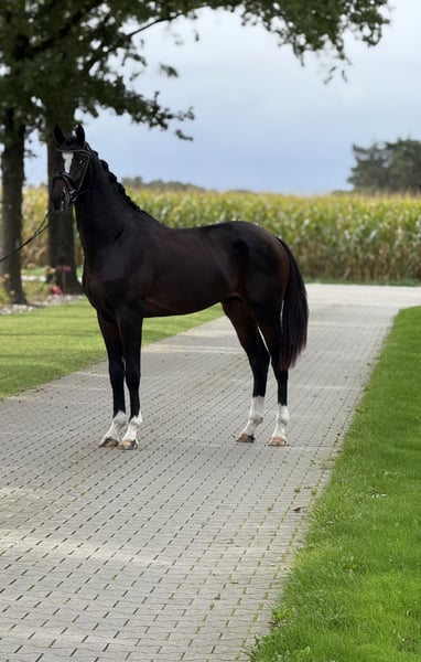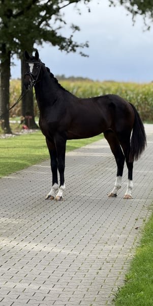 For sale is a modern and expressive young stallion who impresses with his quality, movement, and excellent character. The 2.5-year-old stallion stands approximately 16.1 hh and is by Next Level out of a mare with Everdale x Westenwind bloodlines. His sire, Next Level, was the champion stallion at the Dutch licensing as a three-year-old and is known for rideability, type, and willingness to perform. This young stallion presents himself with a very appealing, modern conformation and three above-average basic gaits. He has already been calmly lunged, is always easy to handle, and possesses a very good, balanced temperament. His striking appearance makes him a real eye-catcher and offers excellent prospects both for ambitious dressage sport and breeding. Good X-ray results are available. Overall, a promising young horse for riders or breeders seeking quality, potential, and an outstanding pedigree. Interested parties are welcome to get in touch – videos and further information are available. 📞 +49 174 7911598
