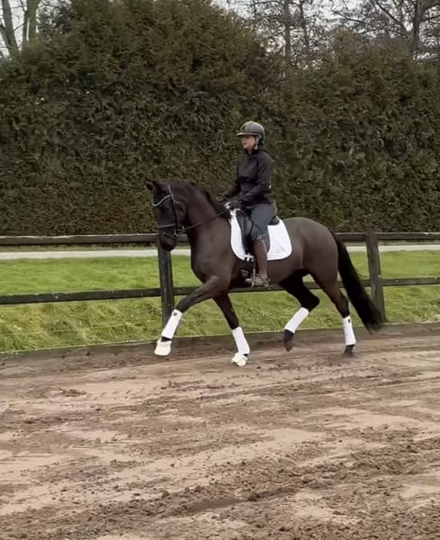 Super sweet 3-year-old gelding by McLaren OLD NOPT x pref, pres, prok out of Jazz x star out of Ulft. Very well-behaved and willing, not spooky, nice in the contact, and gentle in hand! He has already competed in two young horse competitions and is doing great. Calm in the cart and easy to ride. Purchased as a foal and now ready to make someone very happy! He measures 1.62 m and has a complete history. Sandstorm’s dam, Zannou B, previously produced the international Small Tour horse Peanut (by Painted Black) for Frederik Van de Keere, and Sandstorm is a half-brother to the ZZ-Advanced dressage horse Jerdeaux (by Ferdeaux). Dam Zannou B is also a half-sister to the successful Small Tour horse Oronia (by Jazz) of Madeleine Witte-Vrees. Sandstorm shares the same granddam as the international Grand Prix horse Vontango B (by Contango), the KWPN-licensed international Small Tour stallion Don Tango B (by Contango), the Oldenburg and Westphalian approved stallion Antango du Feuillard (by Ampère), who debuted last year in the international U25 Grand Prix with Maria Mejlgaard Jensen, and the national Z2 dressage horse Christon B (by Sandro Hit). Price: €16,500 excluding VAT Contact: 0657666056