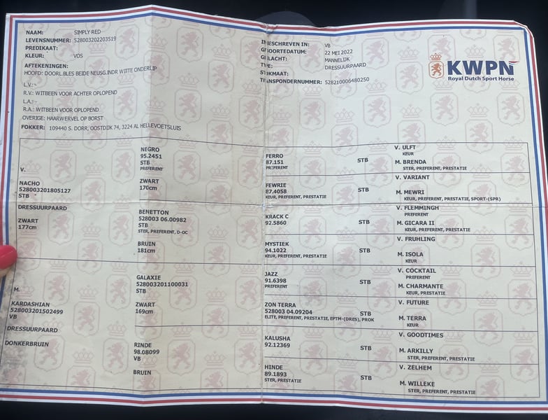 KWPN is an abbreviation for the studbook of the Dutch Warmblood: "Koninklijke Warmbloed Paardenstamboek Nederland". The dam line of this breed originates from the domestic, heavy breeds Gelderland and Groningen horse. The home-grown mares have been crossbred with stallions from other warmblood breed ... More about the horse breed KWPN