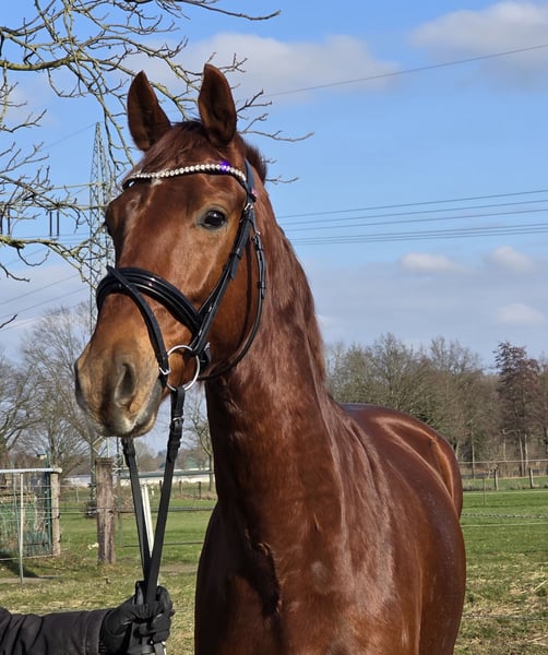 Sambucca Gold ist ein zurzeit 165 cm großer KWPN Wallach (wächst noch). Sambucca wurde vor kurzem schonend angeritten, vom ersten Tag an war er nur brav. Er hat noch nie einen falschen Schritt gemacht. Samucca hat viel Potenzial fürs Viereck, muss ja auch mit dieser tollen Abstammung. :-) Mütterlicherseits stammt er von Fürst Heinrich/Florestan ab. Sambucca hat 3 ausgezeichnete GGA, Videos versenden wir gerne über WhatsApp. Außerdem macht er einen sehr guten Freisprung. Sambucca ist ein toller Allrounder. Ideales Damen und Umsteigerpferd. Ja einen aktuellen Tüv ohne Befunde hat er ebenfalls. Für noch mehr Infos, freuen wir uns auf Anrufe unter: 0177/2721831.