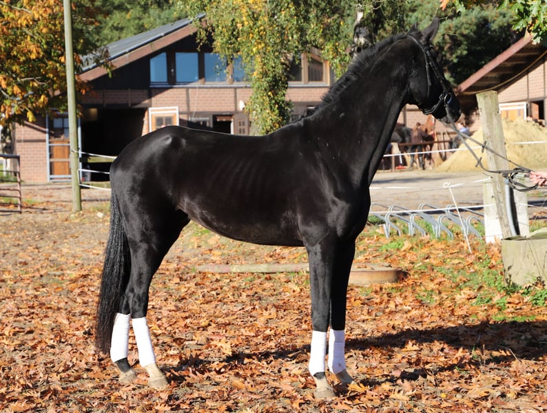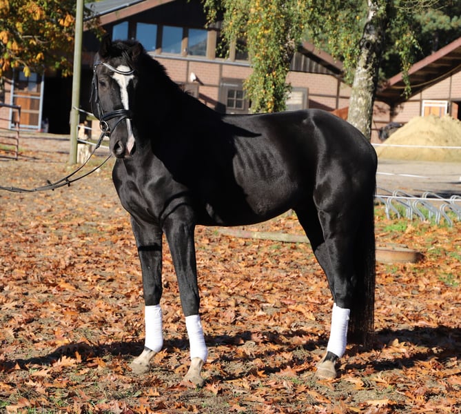 For sale: an impressive KWPN gelding – the perfect partner for dressage! This elegant black stallion was born in 2021 and impresses with his striking appearance and promising temperament. Standing at 16.1 hh, he offers an ideal size for ambitious riders seeking a reliable partner in the dressage arena. The gelding demonstrates solid basic training, a friendly nature, and a willingness to learn. He shows great potential for further development in dressage and is suitable for both advanced riders and talented young riders. Revel is offered at a significantly reduced price due to a head injury. If you are interested or have further questions, please feel free to contact me. Arrange a viewing appointment and see for yourself this promising horse! Additional information gladly available via WhatsApp at 01722734811.