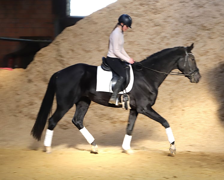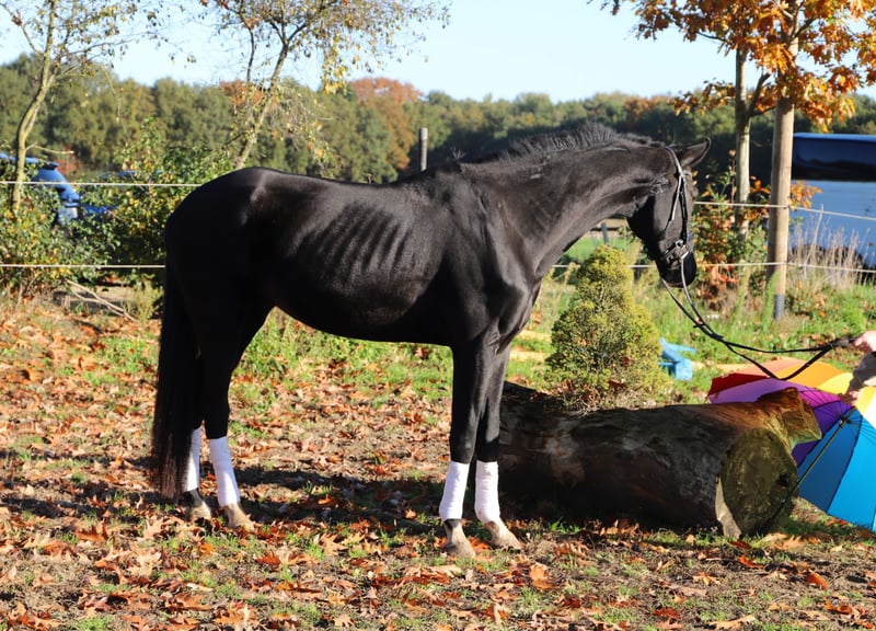 Verkaufe einen beeindruckenden KWPN-Wallach – ideal für den Dressursport! Dieser elegante Rappe wurde im Jahr 2021 geboren und besticht durch sein ansprechendes Erscheinungsbild sowie sein vielversprechendes Temperament. Mit einem Stockmaß von 170 cm bietet er die perfekte Größe für ambitionierte Reiter, die auf der Suche nach einem zuverlässigen Partner für den Dressurviereck sind. Der Wallach überzeugt durch seine gute Grundausbildung, sein angenehmes Wesen und seine Bereitschaft, Neues zu lernen. Er zeigt viel Potenzial für die weitere Ausbildung im Dressursport und ist sowohl für fortgeschrittene Reiter als auch für ambitionierte Nachwuchstalente geeignet. Revel wird weit unter wehrt abgegeben da er koppt Bei Interesse oder weiteren Fragen stehe ich Ihnen gerne zur Verfügung. Vereinbaren Sie einen Termin für eine Besichtigung und überzeugen Sie sich selbst von diesem vielversprechenden Pferd! Weitere Informationen gerne über Wats App 01722734811