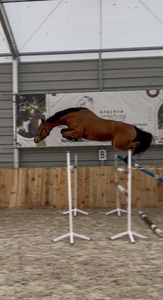 Elegant KWPN Gelding (Landino VDL x Stakkato Gold x Arezzo VDL Discover a remarkable opportunity to own a stunning KWPN gelding born in 2021. Standing at 164 cm, this bay beauty combines athleticism with grace, making him an ideal partner for jumping disciplines. His impressive jumping ability, combined with a confident and willing temperament, promises a bright future in competitive show jumping or eventing. Well-trained and ready to excel, this talented young horse is sure to capture your heart. Don’t miss the chance to bring this exceptional horse into your stable!