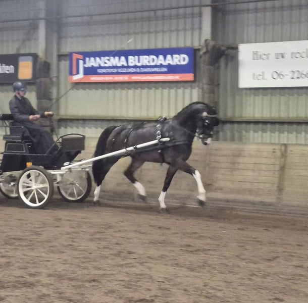 Rinaldo ist ein sehr braver KWPN Wallach, der mit tollen Grundgangarten ausgestattet ist. Er hat einen raumgreifenden Schritt und Trab und auch sein Galopp vor der Kutsche zeigt eine hohe Versammlungsbereitschaft. Er ist 4jährig schon kleine Turniere gegangen im Einspänner (Dressur und Kegel). Er war schon einige Male im Zweispänner und wurde kürzlich eingeritten. Auch das macht er super brav. Kontakt und weitere Videos gern per WhatsApp 00491607841654.