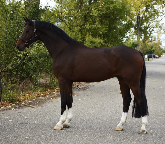 Vendesi stallone KWPN – Perfetto per il dressage! In vendita un elegante stallone KWPN, nato nel 2020. Con il suo colore marrone scuro, conquista per il suo aspetto molto gradevole. L’animale ha un’altezza al garrese di 169 cm ed è ideale per il salto e il dressage. Lo stallone mostra una promettente base di addestramento ed ha un temperamento piacevole. È ben educato, attento e motivato nel lavoro. La sua presenza elegante e il suo potenziale lo rendono un partner interessante per cavalieri ambiziosi che vogliono fare carriera nel dressage. Per ulteriori informazioni o per un appuntamento di visione, sono a disposizione. Organizzate una visita e lasciatevi conquistare da questo promettente cavallo! Possiamo eventualmente aiutare con il trasporto.