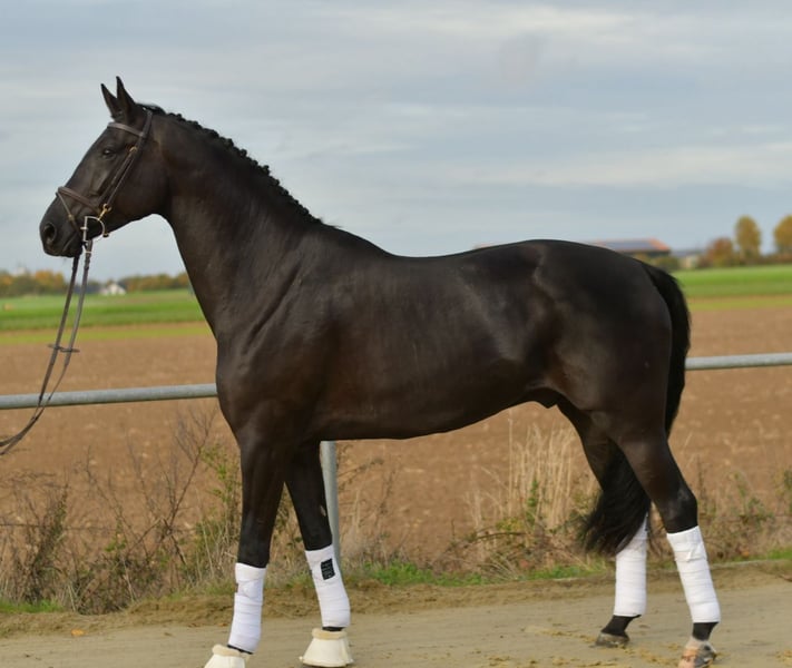 Discover your new dream horse with Pole Position! This impressive offspring of GLOCK'S TOTO JR. and the legendary Opa Totilas captivates not only with its stunning black coat but also with its outstanding and above-average movement quality. Standing approximately 17.6 hh and only 5 years old, he epitomizes the picture-perfect dressage horse. Pole Position is at the beginning of his training and ready to start in the Young Dressage Horse class (L) with just a little work. He impresses not only with his potential but also with a complete health certificate (TÜV) without any findings – a true dream horse for any rider! For those seeking a beautiful horse that can shine both in training and competition, Pole Position is the perfect choice. You are welcome to try riding him or have a test ride – this costs €50 and will be fully refunded upon purchase. If you are searching for the ideal partner for the big arena, look no further. Let yourself be enchanted by Pole Position and experience the possibilities he offers!