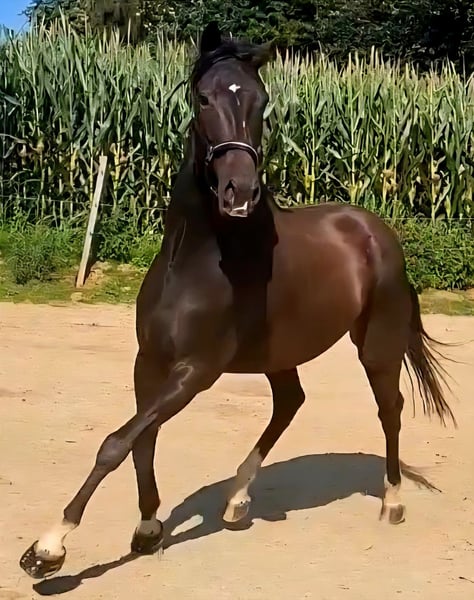 Annonce de vente : Joli hongre KWPN à vendre À vendre, un charmant hongre KWPN, né en 2020. Avec une taille au garrot de 1,67 m et son pelage noir-brun élégant, il attire immédiatement l’attention. Ce hongre talentueux est parfaitement adapté au dressage et montre déjà des aptitudes prometteuses dans sa formation. Il possède une attitude agréable et calme, et se montre très obéissant aussi bien à la longe qu en selle. Cassy monte sans difficulté dans le van et fait preuve d’un sang-froid et d’un courage remarquables même dans des situations stressantes. Il convient idéalement à des cavaliers à la recherche d’un partenaire prometteur pour la randonnée ou le dressage, que ce soit en amateur ou en compétition. Pour toute question ou information complémentaire, je suis à votre disposition au 0160/91374063. Des vidéos sont disponibles via WhatsApp.