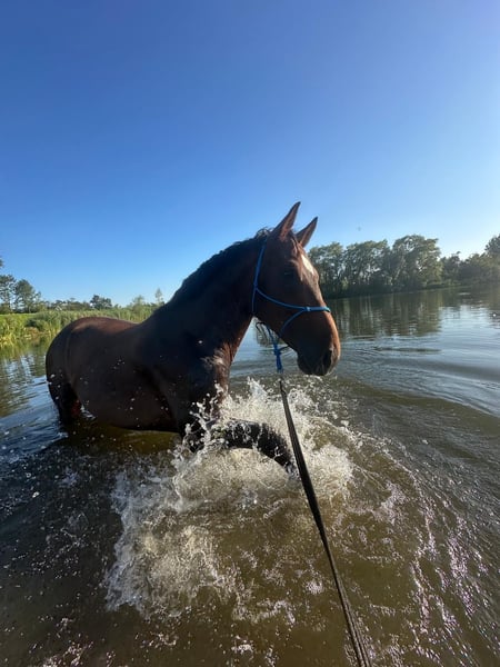 For sale: my incredibly sweet, well-built, and social “O Macho.” Macho is a 6-year-old KWPN (Jappeloup x Kenwood) with a heart of gold. Macho is a true family horse who loves attention. He enjoys going out, whether to competitions or on outdoor rides. He is trained up to L2 level dressage and has previously competed in 100 cm show jumping. Additionally, Macho has done some cross-training, which he really enjoys. He is bombproof, practically unshakable and unbothered by anything. This also makes him suitable for transitioning from pony to horse. However, he is not recommended for absolute beginners. Macho is only available to a home where he will be outside frequently, preferably a 5-star environment. He is very social, used to being part of a herd, and feels comfortable there. His entire history is known: we bought Macho from people with whom we still maintain good contact, and they purchased him directly from the breeder. The reason for selling is that my ambitions do not lie in sport, while Macho is eager for that challenge. Macho has always been vaccinated on time, has seen the dentist, been treated by the osteopath, and has visited the farrier. He handles all procedures calmly and without issues. He has no stable vices and is easy to load onto a trailer or truck. As of November 2023, Macho has been clinically and radiologically (including neck and back) fully approved for sport. Re-approval is possible at the new owner’s expense. For questions or serious interest, please contact me at: 06-21180946. Dealers and riding schools are asked not to respond.