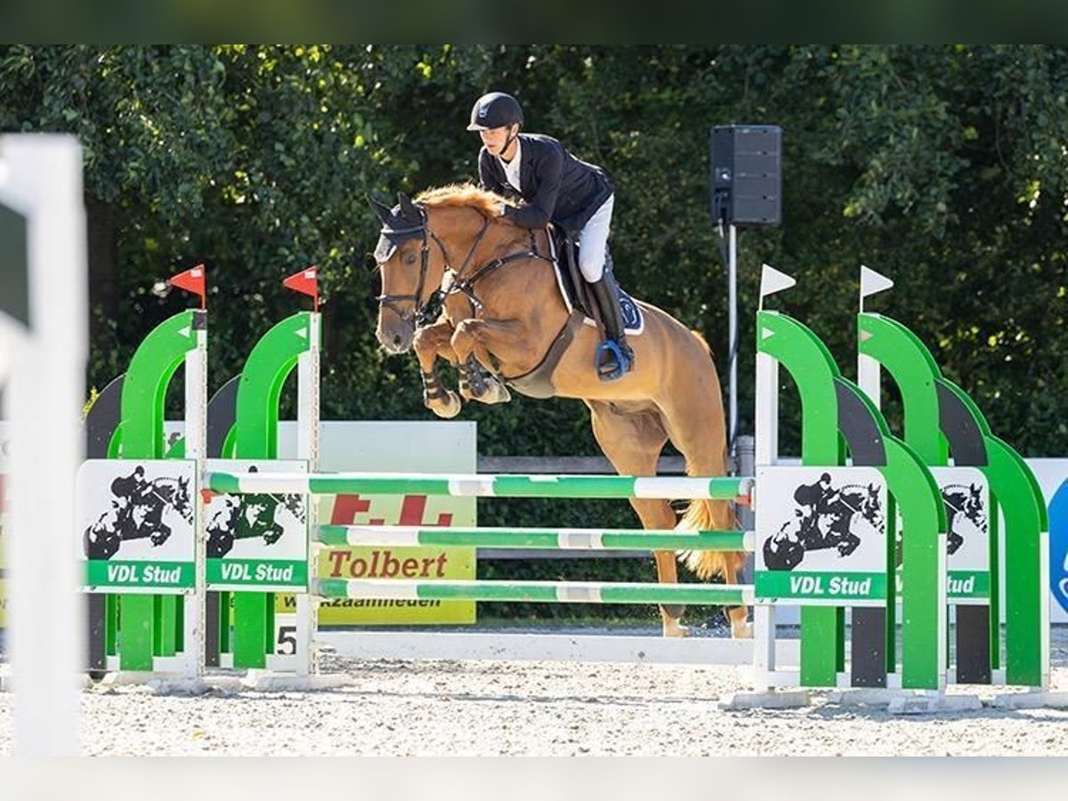 This very modern chestnut gelding shows great promise for the highest levels of competitive riding. He possesses exceptional jumping ability combined with excellent awareness and carefulness. He is easy to ride and very responsive. A promising prospect for both amateurs and professionals. He is fresh vetted without any issue