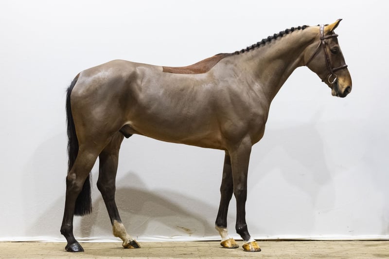 Only six years old with already 1.30m experience. Jumps a bigger fence easily and shows clear scope. Clever at the fence and always wants to leave the rails up. Shows commitment and conviction in his jumping style. A horse that could surprise at higher level in the future. His easy scope and strong mentality indicate there is more to come. Comes from an outstanding damline, which guarantees attitude and power. A sport horse with serious future potential.