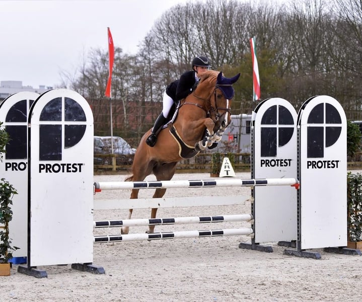 Onana N – 7 year-old gelding by exciting show jumping bloodlines (Kannan x Diamant de Semilly). Successfully competed up to 1.30 m. Shows great scope, is careful and brave to the fences. Very rideable, nice in flatwork and schooling. No injury history. Easy and kind in all handling. Offered for sale to an experienced rider only – not suitable for beginners.