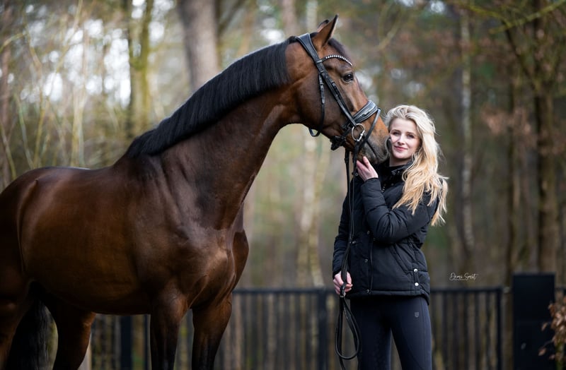 Looking for his future home! Obvious Pleasure ( It’s a pleasure X Goodtimes ) is now 6 years old (2019), 166cm, a handsome gelding, healthy, kind, and always a joy to be around. He’s sweet in the stable, easy to ride, enjoys cuddles, and even loves little adventures like a ride in the woods or exploring the neighbourhood. He will be more than prepared for the 7yo competitions next year🥰 Knows pirouttes and flying changes! Now it’s time to start looking for a new home where he will be loved just as much and can continue to shine. 🫶 📩 If you think oli might be your future best friend, feel free to contact me directly. Higher price range, Longer video available!