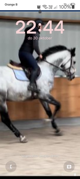 6-year-old horse 180 cm tall, very affectionate, truly a sight to behold. Okkie would certainly not be out of place as a recreational horse; spending days doing nothing and trail riding is also fine, as he enjoys being outdoors a lot. Since Okkie is tall and has a substantial build, larger riders can also comfortably ride him.