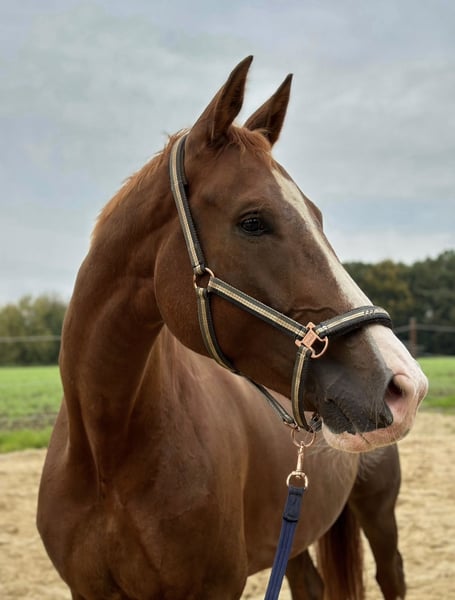 Con mucho pesar, tenemos que separar a nuestro querido caballo castaño. ¡Buscamos un hogar de 5 estrellas! Se destaca por su excelente movimiento y una hermosa apariencia exterior. Le encanta trabajar en la pista, ya sea en trabajo en suelo o en largas. Es muy receptivo y responde bien a la voz. También puede salir a pasear solo o en grupo, y conoce el tráfico urbano. En grupo, no intenta adelantar y mantiene siempre la misma velocidad, incluso en galopes. Por motivos de un diagnóstico médico, los paseos, el trabajo en suelo y las sesiones de longe deben ser prioritarios. Ya se ha realizado un tratamiento clínico único. Con gusto se puede dar más información en persona. A pesar de su carácter cariñoso y sociable, no es un caballo para principiantes en la disciplina de doma clásica. También ha realizado pequeños saltos. Se pueden enviar fotos, videos y más información tras una breve presentación. ¡Antes el lugar que el precio! NO se vende a comerciantes ni clubes.