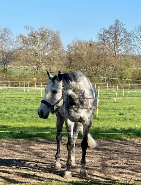 Dubna ist ein in den Niederlanden geborener, 9jähriger Schimmel-Wallach mit einem Stockmaß von 162 cm. Der Wallach ist ideal für den Freizeitbereich geeignet und überzeugt durch sein angenehmes Wesen sowie seine vielseitigen Einsatzmöglichkeiten. Das einzige was nicht so gut geht , ist springen. Er macht das zwar, aber es liegt ihm einfach nicht. Ansonsten ist er gesund, gepflegt und kennt den Umgang mit Menschen. Perfekt für Reiter, die einen zuverlässigen Begleiter suchen. Gesund und munter, regelmäßig geimpft und entwurmt. AKU mit Röntgen liegt vor.