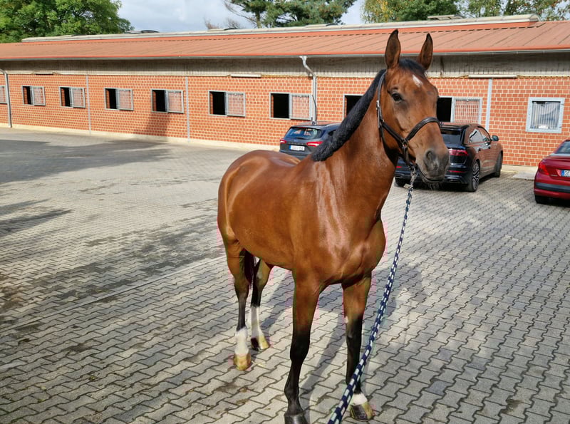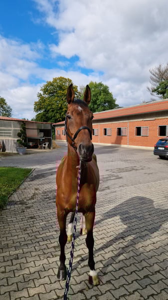 Livingston – 9-year-old heart horse, successful up to M**, ideal for juniors & amateurs Livingston is a 9-year-old, healthy, and well-behaved gelding from a loving private owner – sportily successful and absolutely lovable in daily handling. Highlights: ✅ Competition experience, placed up to M** (5 placements in just 10 starts), also jumped S* ✅ Very high success rate with amateurs – approx. 50% placements in M** ✅ Carefully developed: first competition start at 6 years old, only about 50 starts in total ✅ Victorious in L- and M*-show jumping, placed in M** and style jumping ✅ Brave, honest, reliable – a horse particularly suitable for juniors & amateurs ✅ Well-mannered, compatible with other horses, uncomplicated with the farrier and transport ✅ Healthy, unused, uncomplicated ✅ Ideally suited for juniors & amateurs Career & History: Livingston was purchased by us at the age of 5 (almost untrained) in Holland, carefully and horse-friendly trained, and always purposefully used. After a break due to an injury on my part, he was temporarily with a young rider, where he was further developed and is now successfully competing with me again (most recently placed on 31.08.25 in M* 125 cm style jumping). Livingston has a lot of ability, caution, and "go" for demanding jumps. Despite his skills, he is absolutely well-behaved and reliable, making him an excellent sport partner for juniors or amateurs looking for an honest and willing horse. Health & Papers: Complete pre-purchase examination with X-rays (at 6 years old) available (no findings), additionally, current X-rays of the back and cervical spine (no findings) All documents are available for inspection. Special: For us, the priority is finding a good home over price. Livingston should go to a loving home where sporting goals and horse welfare are equally important (regular turnout and paddock access desired). Reason for sale: My daughter no longer rides, so we reluctantly want to part with Livingston (and another horse). 📹 Videos & more info: available on Rimondo and ClipMyHorse.