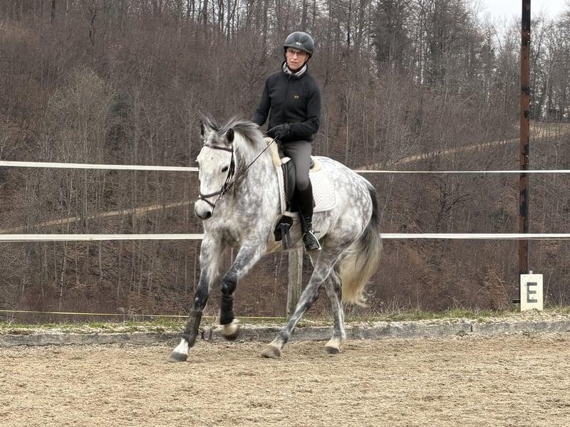 Due to health reasons and the decision to retire from competitive riding, we are selling our beautiful and gentle grey mare. She is accustomed to hacking out alone and is very easy to ride. She has good basic gaits and some jumping experience. She is very clear-minded, motivated during work, and eager to learn. For more information, please call.
