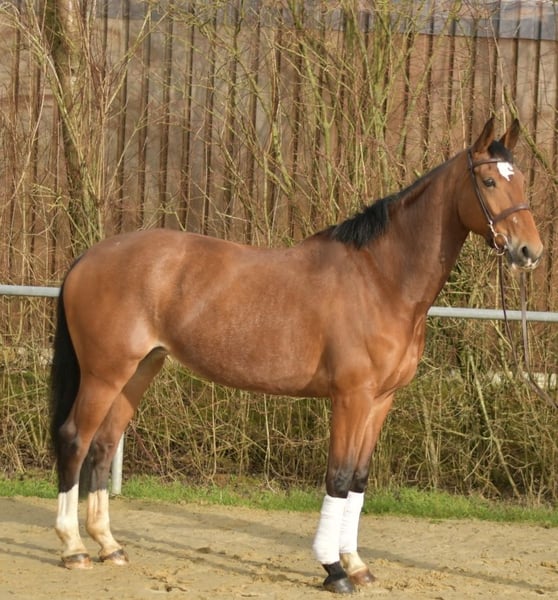 Discover your perfect partner in show jumping: our charming KWPN mare **Karla Leva**! Born in 2015, this exceptional mare stands approximately 16.1 hh and impresses not only with her striking markings but also with her fantastic temperament. She is compact and agile, making her ideal for ambitious riders seeking a reliable partner. ### Characteristics: - **Unique markings:** Her distinctive appearance makes her a real eye-catcher in the stable and on the course. - **Excellent temperament:** Karla Leva has a positive attitude that makes training a pleasure. - **Easy to ride:** She responds superbly to aids and is suitable for both experienced riders and those transitioning from other disciplines. - **Competition experience:** Whether in unfamiliar environments or at shows, she handles every challenge with confidence and calmness. ### Special Offer: Secure a **5% discount** on the purchase price with immediate pickup! ### Test riding: Try Karla Leva for a week with us! This trial week can be accompanied by an experienced trainer, and you have the opportunity to combine riding with lessons. Please note that a trial fee applies, which is not deducted from the purchase price. ### Trial riding: See her talents firsthand! You are welcome to visit and meet her. The cost for a pre-ride or trial ride is **30 € per person**. Come by and experience the horse that will turn your riding dreams into reality!