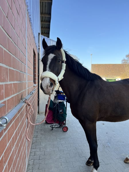 With a heavy heart, we have to part with our twelve-year-old mare. I purchased her just a year ago, but a few months ago it was revealed that she has suspensory ligament injuries in both hind legs. Unfortunately, she can now only be ridden for leisure, making her especially suitable as a beloved trail horse or for breeding. Currently, I take her for a forest ride once a week (trotting and cantering are no problem here) or ride her at a walk in the indoor arena (preferably without a saddle). She is very people-oriented in handling, has a low rank in the herd, and is familiar with both dogs and children. If interested, please contact me via WhatsApp at 0176 64481422.