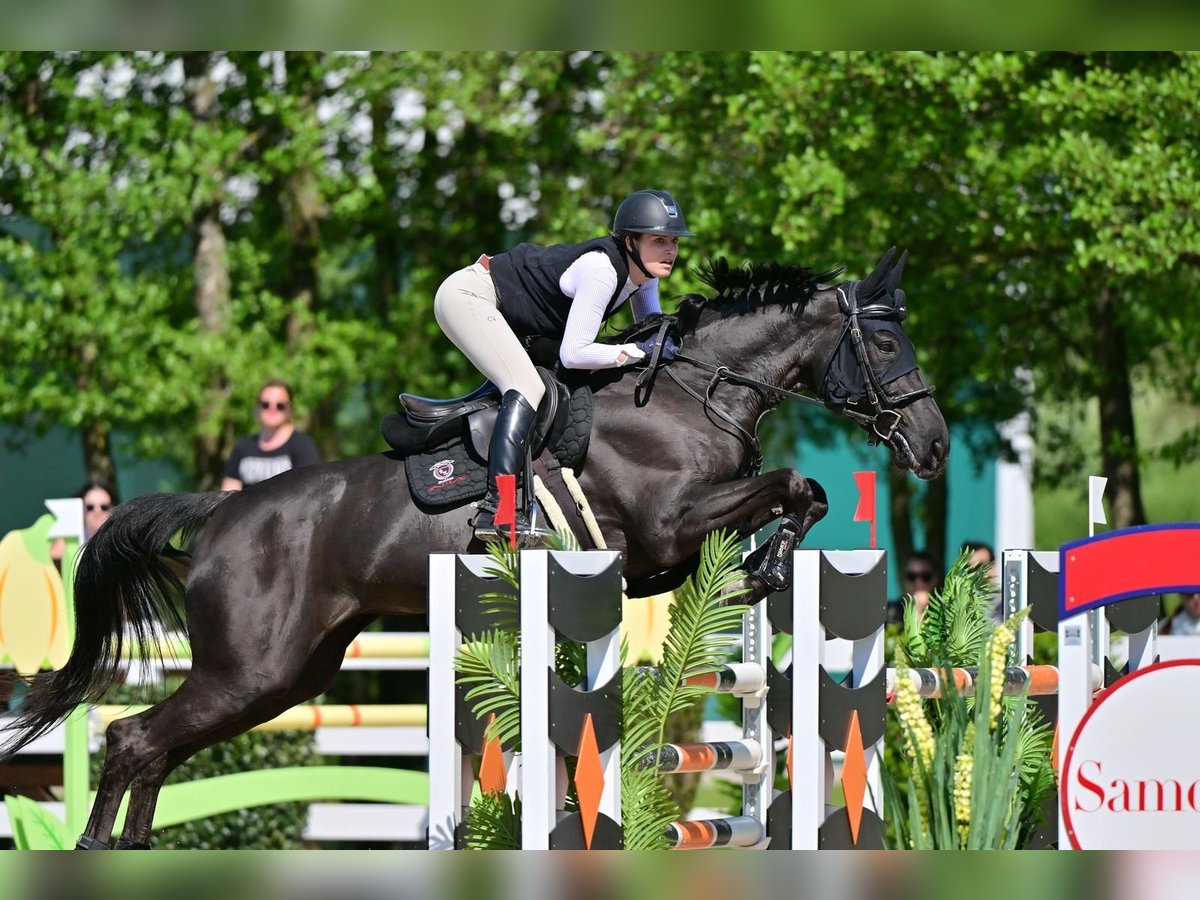 For sale is this stunning and successful KWPN mare, born in 2014, entirely in beautiful black. She impresses with her expressive appearance, excellent temperament, and her friendly, human-oriented nature. The mare is ready for immediate riding and excels particularly in show jumping, demonstrating plenty of talent, ability, and a strong willingness to perform – she "jumps for her rider" and handles tasks confidently even in more challenging situations. At the same time, she is very rideable, uncomplicated, and eager to work. Off the competition field, she is a true all-rounder: well-trained in dressage and willingly goes out on hacks. This makes her suitable for ambitious leisure riders as well as high-level competition. I could easily see her as a perfect partner for young riders or junior riders. In handling, she is extremely affectionate, well-behaved, and reliable – a horse with a heart of gold that always wants to please and does everything for and with her rider. An honest, hardworking, talented partner with great potential for her further sporting development. Previous achievements include countless wins and placings, regional champion (twice with a youth rider), vice state champion (youth), 140 wins, and placements up to 145 internationally! Due to our withdrawal from competitive riding, we are reluctantly offering this special mare. Our priority is that she finds a nurturing and appreciative home where her talent will continue to be developed. She is a horse that brings her owner immense joy and will be a wonderful partner for the future. Price is negotiable.