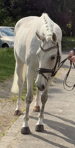 Schön zu reitende, brave Stute in auffallender Optik zu verkaufen! Isi geht leicht am Zügel und ist gut zu sitzen. Sie beherrscht fliegende Wechsel und kennt Stangenarbeit sowie Ausreiten. Im Umgang sowie beim Schmied und Verladen ist sie ganz brav. Isaiah hat wegen Lahmheit pausiert und ist aktuell nicht geritten. Daher wird sie unter Wert abgegeben. Röntgenbilder liegen vor.