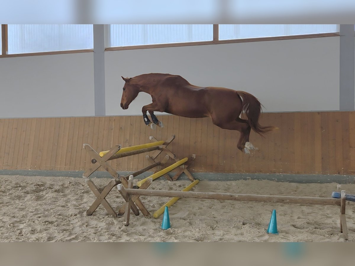 i.A. KWPN 14 jährige Fuchsstute aus Zeitmangel an Bestplatz abzugeben. Absolut Platz vor Preis, am liebsten Endplatz. Ehrliche brave Stute 1,65m groß, unerschrockener unverbrauchter Typ. In den letzten Jahren ausschließlich Freizeit geritten, viel Gelände. Lief als Jungpferd beim Vorbesitzer Turniere bis A Springen. Aktuell wird sie dressurmäsig wieder auf A Niveau angeschoben und zeigt sich hier willig mit Freude an der Arbeit. **** Sie war die Jahre über gesund und hat keinerlei Einschränkungen!***** Ideal für Freizeitreiter, Wiedereinsteiger, ambitionierten Freizeitreiter, Turniere bis A Niveau vorstellbar mit passenden Trainer evtl. auch mehr. Aktuell Barhuf und im Offenstall mit Nachts Box. Abstammung mit NL-Papiere vorhanden: Vater Afellay Mutter Uptown Girl Muttervater Pierrot Probereiten ist nach Terminvereinbarung möglich, einfach melden. Beim Freispringen ist sie sehr motiviert und springt ordentlich. Bei Förderung Potenzial vorhanden!