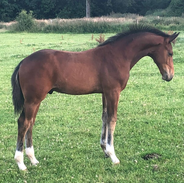 Glossy, an elegant, glossy KWPN mare born in 2011 and standing approximately 1.70 m, is a dressage horse currently offered mainly for breeding purposes. She is primarily aimed at breeders seeking a gentle, well-balanced mare with a high-quality conformation. With an almost impeccable build, Glossy displays a lot of presence, strength, and natural suppleness—qualities that helped her stand out early on. She was notably classified as “Very Good” at the four-year-old young horse finals, with an IDR of 111, confirming her athletic abilities and the quality of her movement. Unfortunately, an injury at age five ended her competitive career, which is why she has been focused on breeding since then. In everyday handling, Glossy is a very gentle mare, human-oriented, calm during care, and travels alone and easily. She exhibits a simple and reassuring behavior, making her easy to manage for both experienced breeders and facilities looking for a reliable broodmare. As a broodmare, she is exceptional, with remarkable fertility. She has always conceived on the first insemination, whether with frozen or chilled semen. She is also an excellent mother, attentive to her foals while remaining very respectful during human manipulations (ultrasounds, care, interventions). Origins Glossy benefits from top-level KWPN genetics, clearly oriented towards modern dressage, combining quality of movement, suppleness, strength, and mental stability. Sire: Apache (KWPN – NLD) Apache is a leading figure in international dressage, known for transmitting expression, elasticity, a powerful trot, and real collection ability. His offspring are distinguished by their ease of use, willing temperament, and sporting aptitude, both under saddle and in breeding. Today, Apache is an essential reference in dressage-oriented pedigrees. Dam’s sire: Grand Cru (KWPN) Grand Cru adds robustness, presence, and strength, with functional movement and good gallop quality. He is appreciated for producing balanced, durable, and reliable horses, contributing a solid foundation and good temperament. This combination of Apache x Grand Cru explains both Glossy’s remarkable conformation, her functional qualities, and the consistency and quality of her offspring. Production record of Glossy 2019: Filly by Cornets Prinz 2021: Filly by Glamourdale 2022: Filly by Vitalis 2023: Filly by Jameson RS2 2024: Colt by Fanomen de Malleret 2025: Colt by Fanomen de Malleret 2026: Year left intentionally empty (pause year) This breeding record demonstrates a coherent, high-end selection focused on modern dressage, involving top-tier stallions. Glossy is registered with the SF, which is an additional asset for a breeding project in France. Why choose Glossy? - Exceptional KWPN mare with outstanding conformation - Excellent suppleness and strength - Very gentle and easy to handle daily - Remarkable fertility - Rich and high-quality offspring An experienced, reliable, and calm broodmare—ideal for both seasoned breeders or those starting a breeding project.