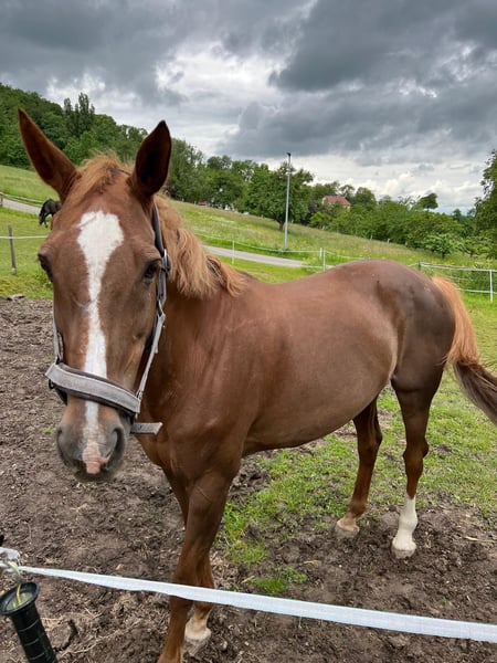 Cinerma ist eine charmante 17-jährige KWPN Stute, die durch ihre tolle Abstammung vom Hengst Quidam de Revel, beeindruckt. Mit einer Größe von 1,66 m und ihrem freundlichen Wesen, ist sie der ideale Freizeitpartner, jedoch eher für etwas erfahrenere Reiter. Im Umgang mit Kinder besticht sie durch ihre liebevolle und umsichtige Art. Auf Turnieren hat sie sich im Springen bis zur Klasse L platziert und bringt daher wertvolle Erfahrung mit. Die letzten zwei Jahre war Cinerma im Schulbetrieb aktiv und hat diese Aufgabe mit viel Geduld und großer Zuverlässigkeit erfüllt. Dennoch sehnt sie sich nach einer festen Bezugsperson, da sie nicht für den ständigen Reiterwechsel geeignet ist. Sie wünscht sich jemanden, mit dem sie noch viele schöne Stunden verbringen darf, ohne das noch große Ambitionen im Springsport im Vordergrund stehen. Kleine Sprünge oder lange Ausritte im Gelände bereiten ihr jedoch weiterhin große Freude. Sie freut sich über jede Form der Bewegung und schätzt es sehr wenn man sich mit ihr beschäftigt. Hat sie dich einmal in ihr Herz geschlossen, wird sie dir treu zur Seite stehen. Ihr Zubehör ist im Preis enthalten. Wenn du Interesse an dieser treuen und liebevollen Stute hast, zögere nicht, dich zu melden und sie bei einem Probereiten persönlich kennenzulernen.