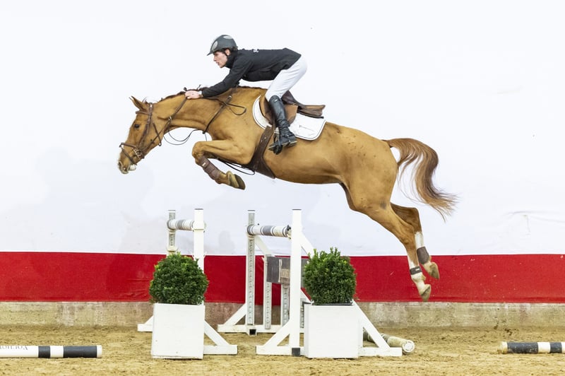 Stacks by Roosberg will turn four years old in 2026 and has only been under saddle for a few weeks. He is clearly still green in his work, but already shows a very good mentality. This is not a horse for a beginner amateur to ride independently right away. He needs some time to build confidence and routine under saddle and to get to know his rider. When jumping along the wall under the rider, he clearly shows where his quality lies: we cannot build high enough and he jumps it with ease. He shows a lot of push, scope and quality, combined with a good attitude. This confirms that you are truly buying a showjumping horse. Our advice is to keep him in professional training for about one more month with a breaking-in rider. This can also be arranged by the seller/breeder. This will make him calmer and easier to handle, also with a view to a less experienced rider in the future. The foundation is there: mentality, scope and quality. The rest is education and time. Sire Arezzo VDL (Chin Chin x Constant) competed himself at 1.60m level and is a proven international sire. His offspring include VDL Edgar M (1.65m), Farezzio (1.65m) and Equine America Harwich VDL (1.65m). A sire line known for scope, reflexes and mentality. Dam Kaloutina van het Maaskantje (Grand Slam VDL) competed at 1.25m level and comes from an exceptionally strong performance family. This damline has produced many horses competing at 1.30m to 1.45m, including Galoutina C (1.45m CSI), Lightspot van het Maaskantje (1.45m, winner in the USA), Itina (1.45m, CSN USA), Metina van het Maaskantje (1.35m) and Liarado van het Maaskantje (1.30m), as well as several internationally placed horses. The further damline through Aretina M (Indoctro, 1.35m) and Retina M (Cash) confirms the consistent sport production of this family. Stacks by Roosberg combines top pedigree, scope and mentality. A young horse that still needs education, but already clearly shows he is built for the sport of showjumping.
