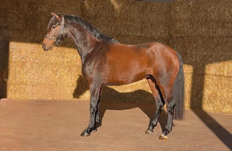 Talented young mare out of great damline with many PSG and Grand Prix dressage horses closely related. Gorgeous model with a striking appearance. Quality mover with superb hindleg and great technique. Diamond in the rough, comes straight from the group. Easy in hand. Used to walker, washing, cross ties, etc. X-rays 100% ok.