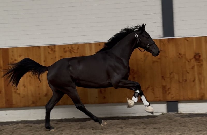 Hochwertiges junges Dressurpferd aus einer guten Mutterlinie und der Schwester des Topvererbers Security (v. Secret). Attraktives, jugendliches Modell mit viel Ausstrahlung. Bewegt sich mit viel Kraft und Technik, besitzt eine gute Balance und viel Losgelassenheit. Drei hervorragende Gänge. Gerade auf den Beinen mit gleichmäßigen Hufen. Kommt direkt aus der Herde und zeigt ein angenehmes Wesen im Umgang. Röntgenologisch zu 100 % in Ordnung.