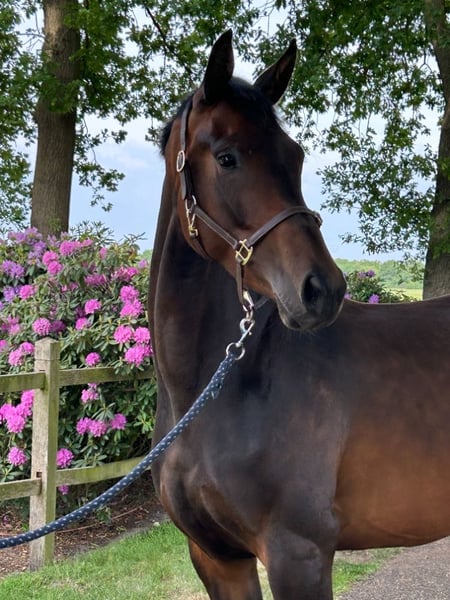 A very striking type, full of presence and correct in limb conformation. Stallion height 1.68 m, from a prestigious and sport-oriented mare line. Directly purchased from the breeder. Has been under saddle for a few weeks and has not put a foot wrong. Very cooperative and people-oriented. Still entirely trainable to suit individual preferences. A promising prospect for the future. Radiographically (including neck and cervical spine) and clinically approved. Mother Zitina (by Painted Black), elite mare, multiple winner in young horse competitions, and qualified for the Young Dressage Horse World Championships selection. Half-brother Kadanz (by Govenor), licensed stallion and competing at Lichte Tour level. Half-brother Jillz (by Johnson), junior rider horse in Poland, ZZ level. Half-sister Monchou (by Glock’s Toto), elite mare, best dressage horse at the Nisse studbook inspection, ZZ-light dressage. For more information: +31 (0)6 27285394 (available on weekdays after 6:00 PM)