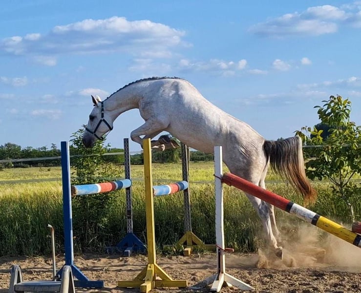 Mare with exceptional talent - #Emir R x #Colman x #Carthago A young mare standing at 170 cm with exceptional talent is looking for an owner who can realize their dream of jumping with quality. This special horse possesses excellent gaits and jumping ability - outstanding use of the front and hind legs, attentive, cooperative, and always striving to give her best in all situations. Her balanced, calm nature makes her an ideal choice even for beginner riders. Key features: Excellent pedigree: Emir R x Colman x Carthago - guaranteed genetic background for athletic performance. High intelligence and learning ability - easy to handle, learns new things quickly. More info via WhatsApp +36706290044
