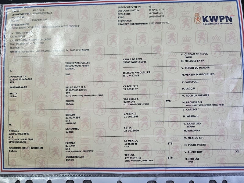 KWPN is an abbreviation for the studbook of the Dutch Warmblood: "Koninklijke Warmbloed Paardenstamboek Nederland". The dam line of this breed originates from the domestic, heavy breeds Gelderland and Groningen horse. The home-grown mares have been crossbred with stallions from other warmblood breed ... More about the horse breed KWPN