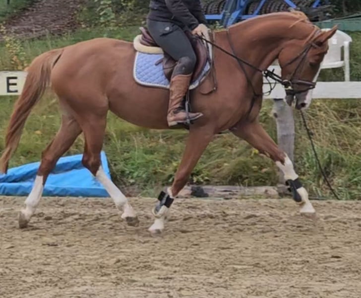 Sie hat noch keine Turniererfahrung, wurde jedoch auf verschiedenen Plätzen und im Gelände geritten.