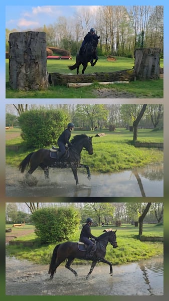 Schweren Herzens geben wir unsere 5-jährige, dunkelbraune Stute (ca. 168 cm Stockmaß) aus Zeitgründen ab. Sie ist eine vielseitige und talentierte Allrounderin, die bereits in allen Bereichen überzeugt: ob Dressur, Springen, Vielseitigkeit oder entspannte Ausritte – sie macht einfach alles mit Freude. Im Springsport wurde sie bereits erfolgreich auf Turnieren vorgestellt und konnte sich platzieren. Besonders hervorzuheben: Sie zeigt stets Ehrgeiz und bleibt niemals am Sprung stehen. Wurde spät angeritten. Durch ihr angenehmes Wesen ist sie ein tolles Umsteiger- und Damenpferd. Zudem ist sie absolut kinderlieb und auch für Kinder bestens geeignet, wodurch sie sich ideal als Familien- oder Mutter-Kind-Pferd anbietet. Im täglichen Handling ist sie unkompliziert: Verladefromm (Hängerfahren problemlos) Hufschmied ohne Schwierigkeiten Sie ist sowohl Paddockbox als auch Offenstall gewohnt, was wir uns auch für ihr neues Zuhause wünschen. Aktuell läuft sie barhuf. Wir wünschen uns für sie ein liebevolles Zuhause in allerbeste Hände, wo sie weiterhin gefördert und geschätzt wird. Kein Notverkauf. Bei Interesse anrufen 01704698736
