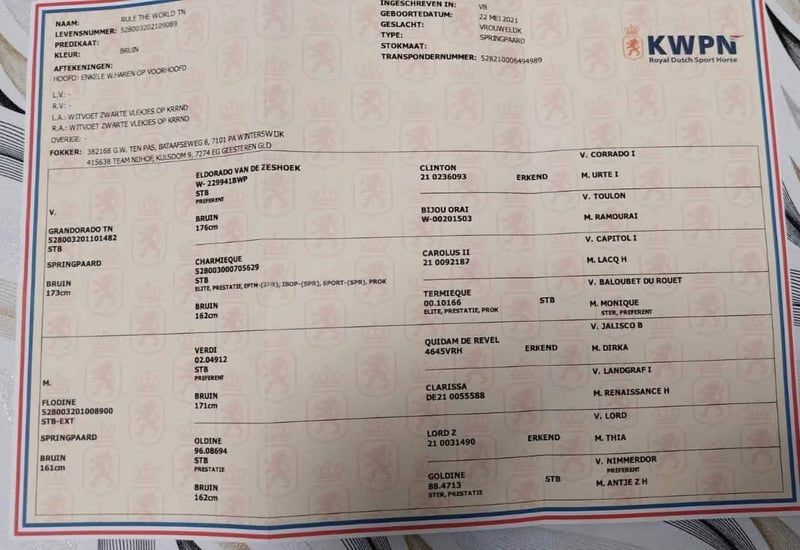 Vater: #GRANDORADO TN x #ELDORADO VAN DE ZESHOEK (160 m) Mutter: #VERDI (160 m) Eine fünfjährige Stute. Sie ist vollständig ausgebildet, sehr angenehm zu reiten, außergewöhnlich talentiert im Springen und kerngesund mit einwandfreien Beinen. Ein vollständiges Röntgen und ein tierärztliches Gutachten liegen vor. Sie ist lieb, intelligent, kooperativ und arbeitet gerne. Ihre Abstammung belegt, dass sie aus einer herausragenden Springpferdefamilie stammt. Sie wird nur in ein geeignetes, verantwortungsvolles Zuhause abgegeben, wo sie zu einem zukünftigen Champion ausgebildet werden kann. +4917640177894