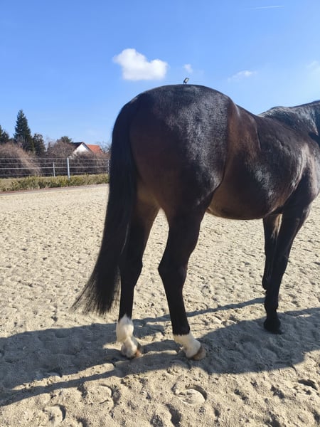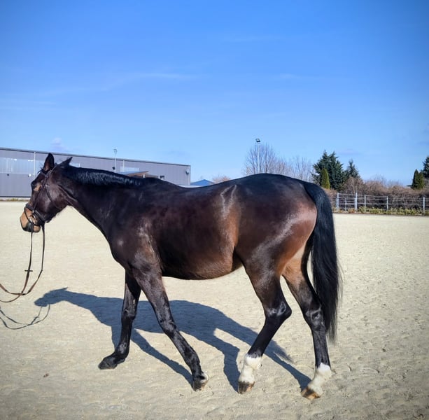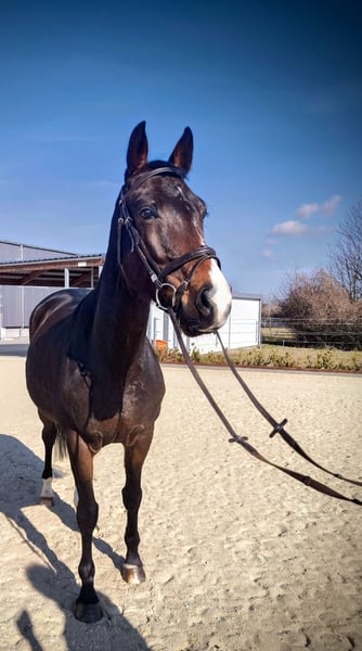 Verkaufe talentierte KWPN-Stute, geb. 2021, mit viel Potenzial für den Springsport. Die dunkelbraune, liebenswerte Stute besticht durch ihre elegante Erscheinung und ein beeindruckendes Stockmaß von 163 cm sowie durch ihren wundervollen Charakter. Sie ist gut geritten, aufmerksam und zeigt eine vielversprechende Springanlage. Dank ihrer soliden Grundausbildung und eines regelmäßigen Trainings bei Marco Hanisch und ihrem freundlichen Wesen ist sie sowohl für ambitionierte Nachwuchsreiter als auch für erfahrene Reiter geeignet. Ein echtes Springtalent, das noch viel Entwicklungspotenzial bietet. Neben dem Springen ist sie im Gelände ein absolutes Verlasspferd. Trotz ihres jungen Alters geht sie problemlos alleine vom Hof und zeigt keinerlei Unarten. Tierarzt, Hufschmied und lange Hängerfahrten stellen für Radar Love kein Problem dar. Sie kennt die Boxenhaltung sowie den Offenstall. Mit ihren Artgenossen zeigt sie sich stets freundlich und rangmittig. Aktuell läuft sie barhuf. Impfungen und Wurmkuren sind immer zeitgerecht erfolgt. Bei Interesse freue ich mich auf Ihre Kontaktaufnahme.