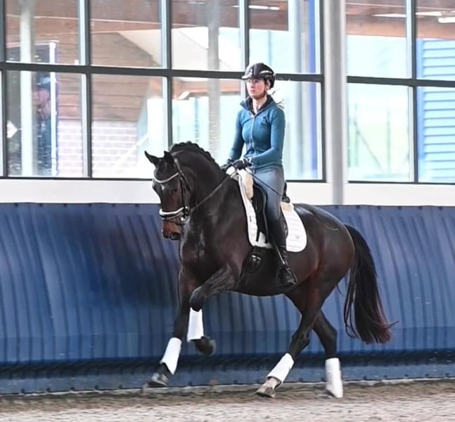 Jumente de qualité, douce et au caractère excellent Cette jument de 5 ans (environ 1,66 m) se distingue par une grande facilité de monte, beaucoup de talent et un tempérament totalement fiable. Elle connaît le terrain aussi bien en solitaire qu’en groupe et fait preuve d’un calme à toute épreuve ainsi que d’une grande simplicité. Formation Niveau A en toute sécurité Gagné des leçons en niveau L Prête à poursuivre sa progression Allures : Trot : très dynamique, rythmée et facile à monter Pas : exceptionnel – elle dépasse plusieurs fois la longueur de ses sabots Galop : sauté en montée, expressif et bien équilibré En dehors des manèges, elle est extrêmement affectueuse, câline et toujours amicale – une véritable partenaire de confiance avec un bel avenir. Pour l’essai, nous demandons 40 euros, qui seront déduits en cas d’achat.