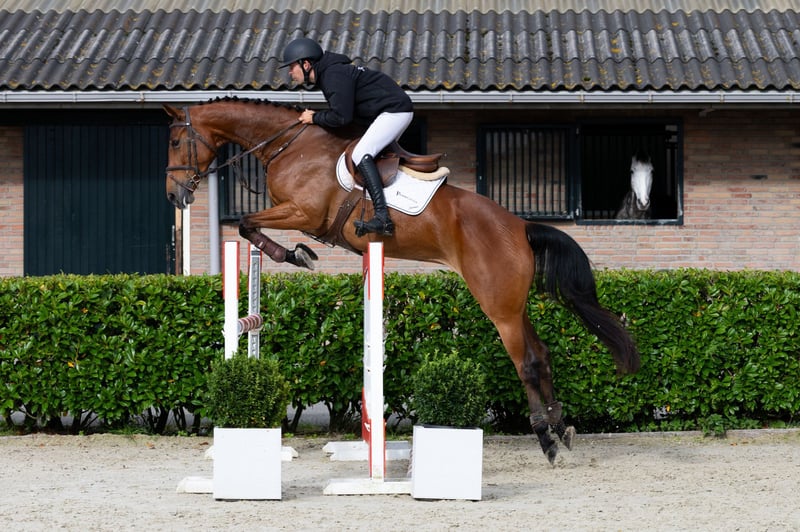 Die fünfjährige Philadelphia ist noch grün, aber bereits gut reitbar. Ein schönes Pferd, das vorsichtig sein möchte und über ausreichend Vermögen verfügt. Für einen unerfahrenen Amateurreiter empfehlen wir sie nicht. Vater Kitt SB (Springen bis 1,20 m) ist bekannt als Halbbruder des 1,60 m Grand Prix-Pferdes Jillz mit Demi van Grunsven. Von seinen ältesten Nachkommen (6 Jahre) springt Ojamora bereits international bis 1,35 m, und Onness SB hat mit CIC1* im Vielseitigkeitssport begonnen. Mutter Kuforia stammt von Emilion x Iroko x Ahorn ab. Diese Stutenlinie hat bereits mehrere Springpferde bis 1,30 m hervorgebracht, und die meisten Stuten haben den Titel „preferent“ erhalten.