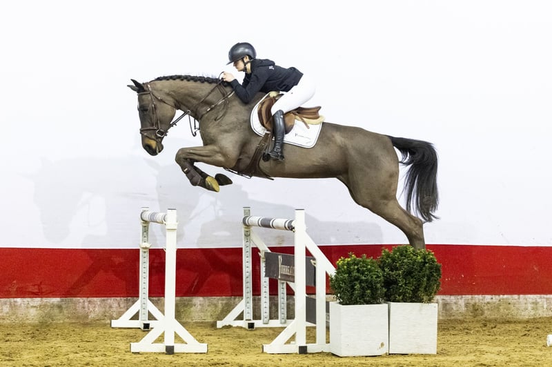 This mare is turning five this year. She first had a foal and has now been under saddle for two months. She is taking up the work very well and does everything with ease. She jumps with a lot of scope and in a very correct way. She comes nicely uphill towards the rider and works properly from behind. Her hindleg technique is strong and she is quick off the ground. We have also seen her free jump, where she showed a lot of quality and power. The higher we built the fences, the better she performed. She jumps consistently and stays in balance. She gives the rider a very good feeling. Has a lovely character, is willing to work and always tries her best. Amateur-friendly, but certainly also suitable for a professional rider. In our opinion, a horse with a lot of potential that can be developed towards a higher level.