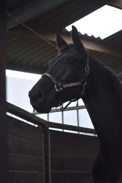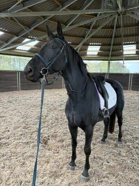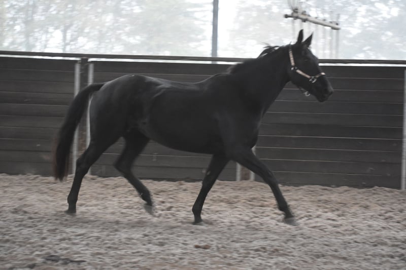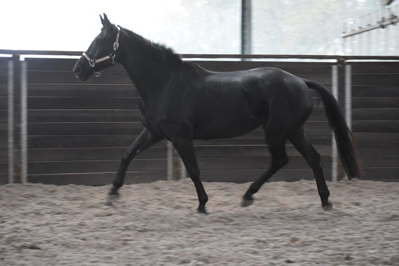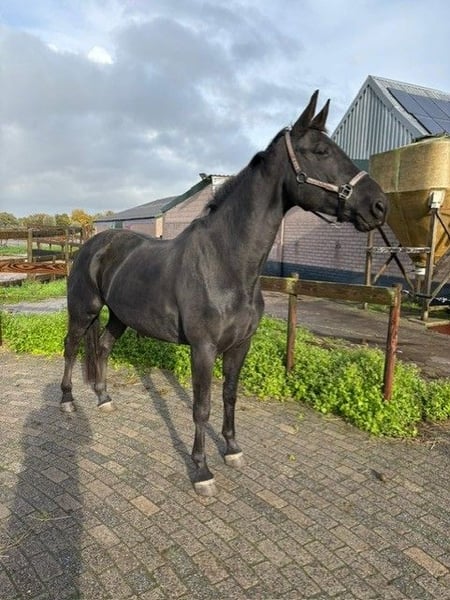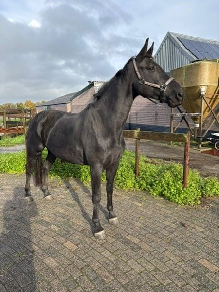 Meet Paulina: truly a horse straight out of a fairy tale. With her deep black coat, expressive eyes, and beautiful, well-built conformation, she is a real eye-catcher. Paulina is 5 years old, approximately 16.1 hh, and boasts an exceptional pedigree: Kjento x Lord Leatherdale. We acquired her directly from the original owner, where she was raised with great care from a young age and has been handled well. She is a genuine sweetheart with a pleasant temperament. She can stand quietly in her stall alone without any issues, despite being very social. Paulina has recently undergone a full clinical and radiological examination, including X-rays of her back, all of which were approved. We are currently continuing her training, which she approaches with great talent and dedication. As her education progresses, the price will increase. Price: €8,500
