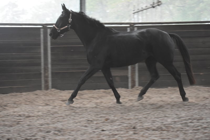 Treffen Sie Paulina: Ein echtes Märchenpferd. Mit ihrem tiefschwarzen Fell, ausdrucksvollen Augen und ihrer schönen, kräftigen Konstitution ist sie eine beeindruckende Erscheinung. Paulina ist 5 Jahre alt, etwa 1,72 m groß und besitzt eine außergewöhnliche Abstammung: Kjento x Lord Leatherdale. Wir haben sie direkt vom Erstbesitzer übernommen, bei dem sie von klein auf mit viel Liebe aufgezogen wurde und gut im Umgang ist. Sie ist eine echte Herzensdame mit einem freundlichen Charakter. Sie bleibt problemlos allein auf der Stallgasse stehen, obwohl sie sehr sozial ist. Paulina wurde kürzlich vollständig klinisch und röntgenologisch untersucht, inklusive Rückenszertifikate. Derzeit bauen wir ihre Ausbildung weiter aus, die sie mit viel Talent und Einsatz zeigt. Mit zunehmendem Ausbildungsstand wird auch der Preis steigen. Preis: 8.500 €