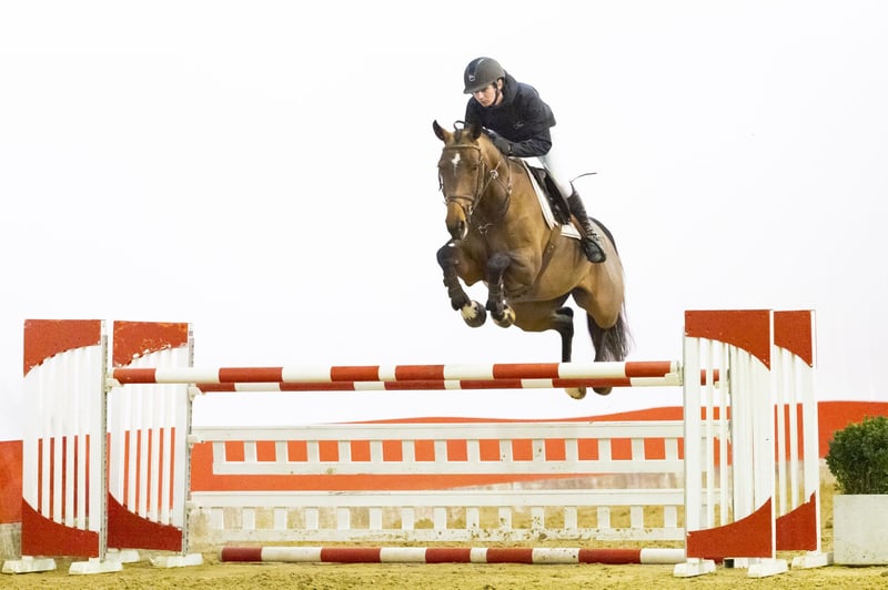 Six-year-old mare with 1.20m experience. A mare with good blood, naturally careful at the fence and quick off the ground. She wants to be careful and takes the rider well to the jump. A horse with blood in a positive way. Cooperative and willing, always trying her best for the rider. A very suitable amateur horse with a correct attitude and reliable jumping style.