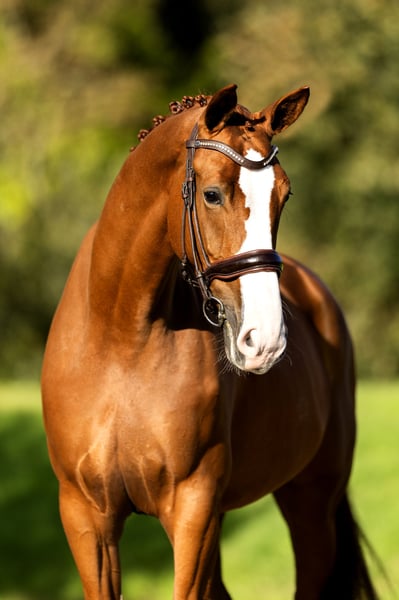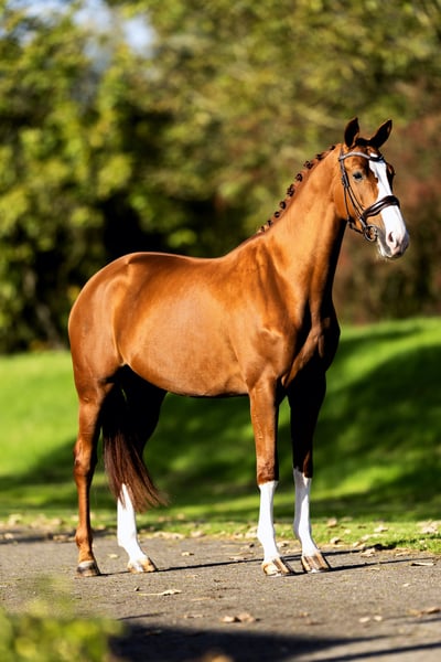 Sześcioletnia klacz, która się wyróżnia! Ouzo z łatwością zdała test IBOP, uzyskując 8 punktów za ruch, 8 punktów za kłus i 8 punktów za postawę. Ouzo osiąga również wysokie wyniki na zawodach. Zna ćwiczenia ujeżdżeniowe M i już skacze na zielonym skoczku. Ma bardzo miłą postawę, co czyni ją odpowiednią dla wszystkich typów jeźdźców. To koń, z którym będziesz się dobrze bawić. Jej matka Vieux jest elitarna i sama z powodzeniem rywalizowała na poziomie Z2. Dzięki swojemu rodowodowi Ouzo jest również bardzo interesująca do hodowli (na przyszłość) z niskim procentem pokrewieństwa wynoszącym 1,5%.