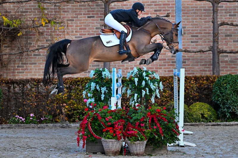 Cette jument de sept ans par Carrera VDL est sans aucun doute l’un des points forts de la vente aux enchères. Son beau type attire immédiatement le regard, et dès que l’on la voit bouger et galoper, il devient évident qu’elle est une véritable athlète sous la selle. Côté mère, on retrouve des étalons tels qu’Amadeus, Come On, Ramiro Z et Joost — tous des sires ayant prouvé leur valeur en élevage. Cette famille a également donné naissance à plusieurs chevaux de sport performants, dont Content (1,45 m) et Zigvago (1,50 m), ainsi que de nombreux autres performers. Sur les obstacles, No Fear montre toute sa qualité : son galop est léger et facile à monter, et elle ajuste son rythme sans effort. À l’obstacle, elle décolle rapidement, reste bien avec le cavalier et affiche un caractère coopératif. À mesure que la hauteur des sauts augmente, elle développe puissance, amplitude et une bonne utilisation de son corps. No Fear est une jument qui pourrait convenir à un large éventail de cavaliers et a sans aucun doute un avenir prometteur. En cas d’exportation directe vers des pays hors UE, la TVA n’est plus applicable (21 % devient 0 %). Si l’exportation est retardée (mais effectuée dès que possible), la TVA sera remboursée après réception du document officiel d’exportation (établi par la douane).