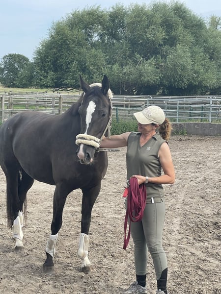 **Verkaufsanzeige: Wunderschöne KWPN-Stute zu verkaufen** **Merkmale:** - **Rasse:** KWPN - **Geschlecht:** Stute - **Geburtsjahr:** 2018 - **Farbe:** Rappe - **Stockmaß:** 167 cm - **Zucht:** Zucht Bildschöne Rappstute zu verkaufen als Zuchtstute oder zum Ausbilden. Wir haben sie im Winter 4 Monate und aktuell 1 Monat unter dem Sattel gehabt. Man konnte sie frei in allen drei Gangarten sehr schön reiten. Sie ist weich zu sitzen und schon konstant in der Anlehnung. Sie klebt aber leider sehr an anderen Stuten, sie ist extrem freundlich zu allen Pferden, super gut integrierbar, möchte dann aber auch bei diesen Pferden verbleiben. Alleine wird sie eher spannig, obwohl sie nicht guckig ist. Sie steigt nicht und bockt nicht. Ich persönlich brauche aufgrund meines Alters ein sicheres Pferd, leider, sonst würde ich weiter machen. An der Hand und im täglichen Umgang ist sie sehr brav und gut händelbar, selbst in schwierigen Situationen und auch unter Spannung wie bei Gewitter etc.. Sie läßt sich auch sehr gut verladen. Sie ist wesentlich mehr wert als der hier angegebene Preisrahmen, ich wünsche mir aber das passende Zuhause auf Lebenszeit. Sie wird nicht an Händler verkauft !