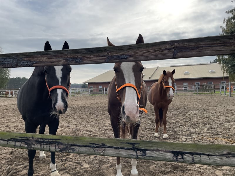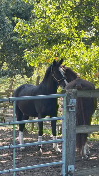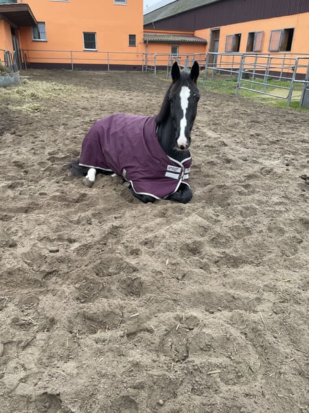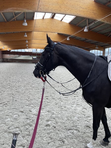 Hermosa yegua negra en venta, preferiblemente como yegua de cría en un hogar permanente, ya que se pone nerviosa bajo la silla. La adquirí a finales de 2024 como futuro caballo de doma. Tiene 4 años y fue montada brevemente, luego estuvo en el prado porque su entrenadora se lesionó y fue vendida a mí desde los Países Bajos a finales de 2024. La hemos montado durante 3 meses en invierno y actualmente 1 mes, y en general ha ido muy bien. Se puede montar con mucha facilidad en los tres aires. Es suave al asiento y ya está constante en la conexión. Sin embargo, se apega mucho a otras yeguas, es extremadamente amigable con todos los caballos, se integra muy bien, pero también quiere quedarse con esos caballos. Si está sola, se pone muy nerviosa; aunque no es asustadiza, puede salir corriendo de repente y saltar. Seguramente esto tiene mucho que ver con su celo, ya que hace cosas extrañas. No se levanta ni se da aires, pero lamentablemente no se puede sentar cuando salta. Personalmente, debido a mi edad, necesito un caballo seguro; de lo contrario, seguiría montando. A pie y en el trato diario es muy tranquila y manejable, incluso en situaciones difíciles y bajo tensión, como durante una tormenta, etc. También se carga muy bien. Vale mucho más de lo que se indica en el rango de precios aquí, pero deseo un criador para ella con un hogar permanente, ya que se puede querer mucho. Por su naturaleza, la veo como una yegua de cría. Sin duda, se puede educar, también es muy amigable y se centra en el jinete, haciendo progresos muy rápidamente. Sin embargo, hay que asumir que se puede caer, incluso si se tiene buena estabilidad en la silla. No se puede probar montando. La yegua fue operada en la parte trasera derecha debido a un chip y va sin cojera. ¡No se vende a comerciantes!